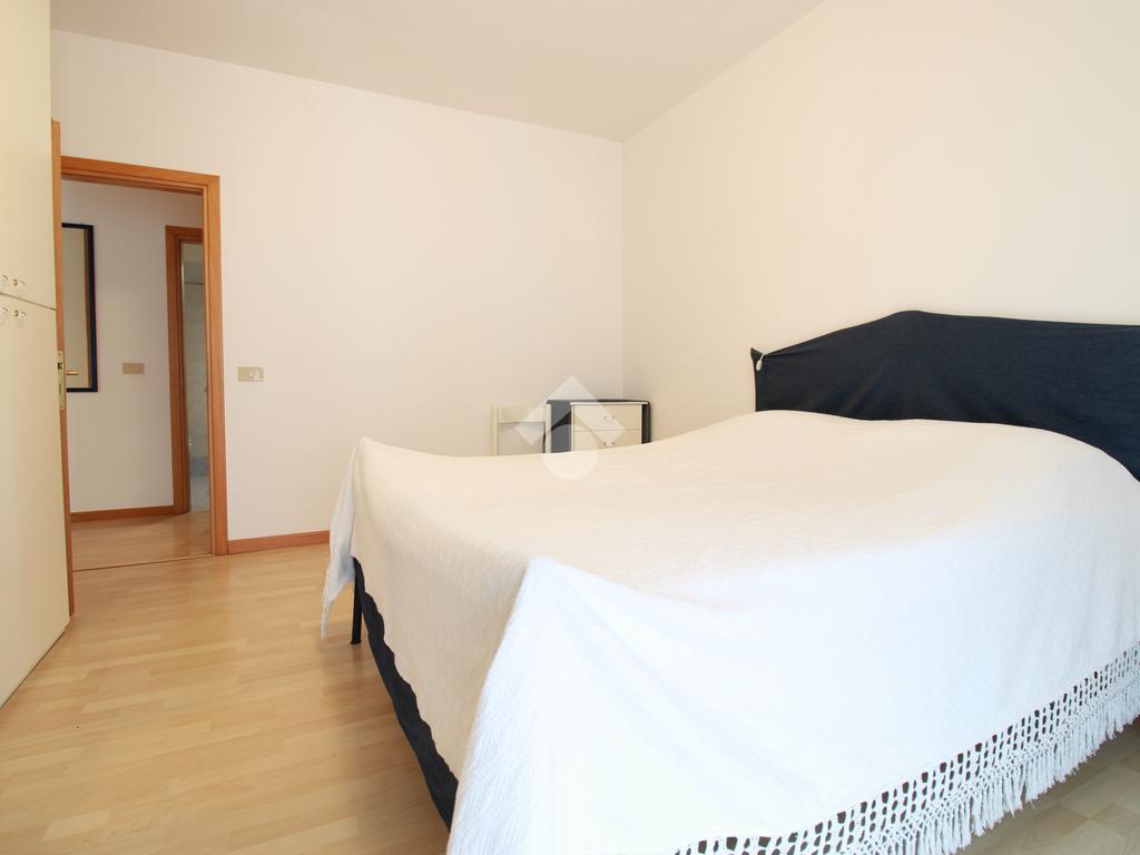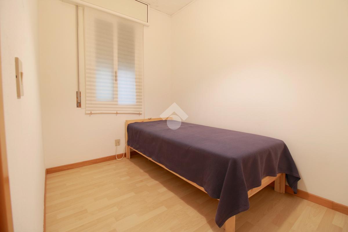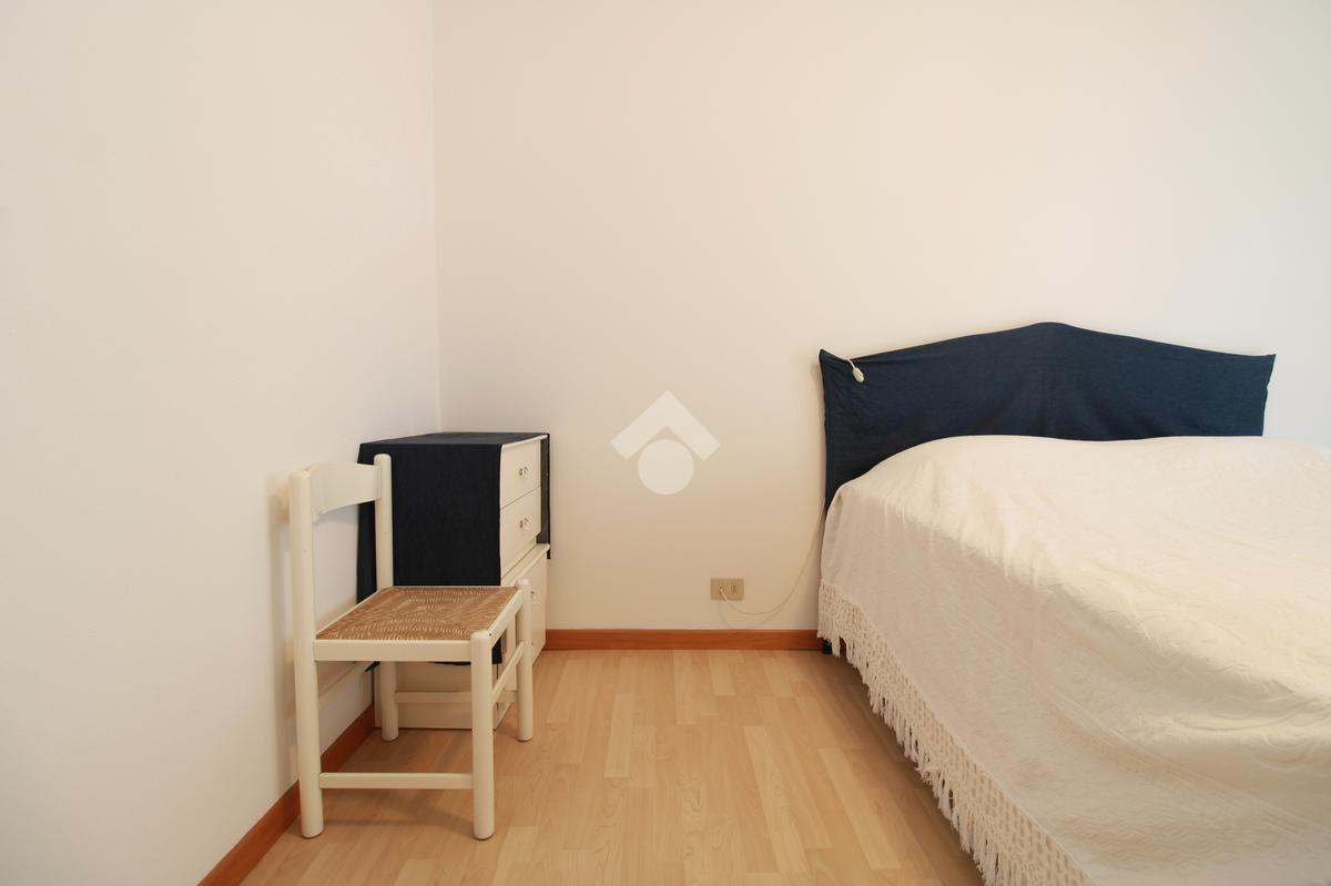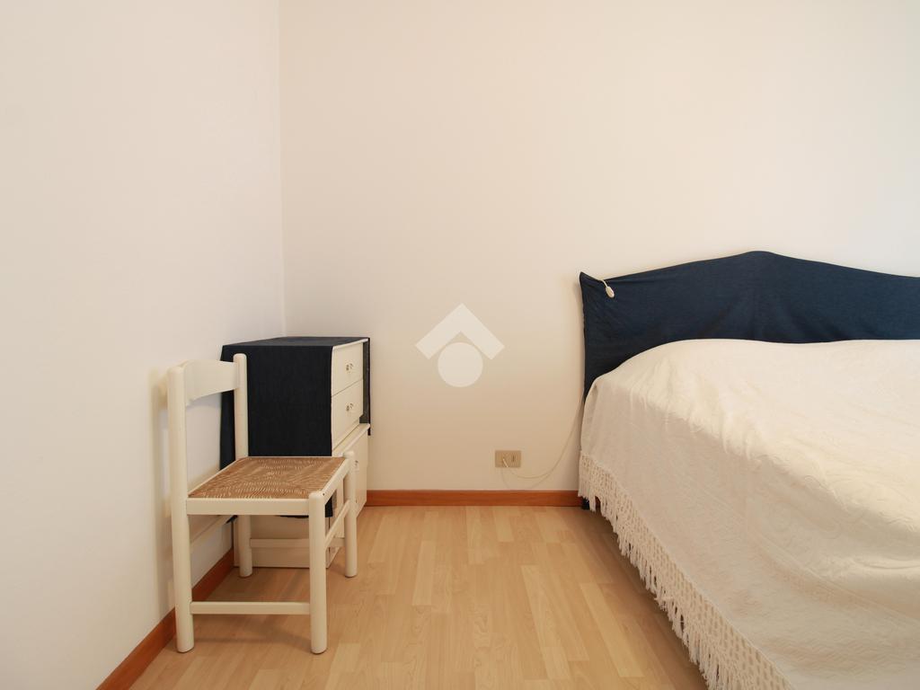 Attraverso un disimpegno si accede alla zona notte, composta da una camera matrimoniale luminosa, con portafinestra sulla terrazza, e da un ripostiglio finestrato, attualmente utilizzato come cameretta, in grado di accogliere anche un letto a castello, per un totale di 4 posti letto.