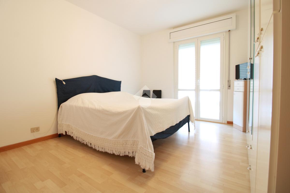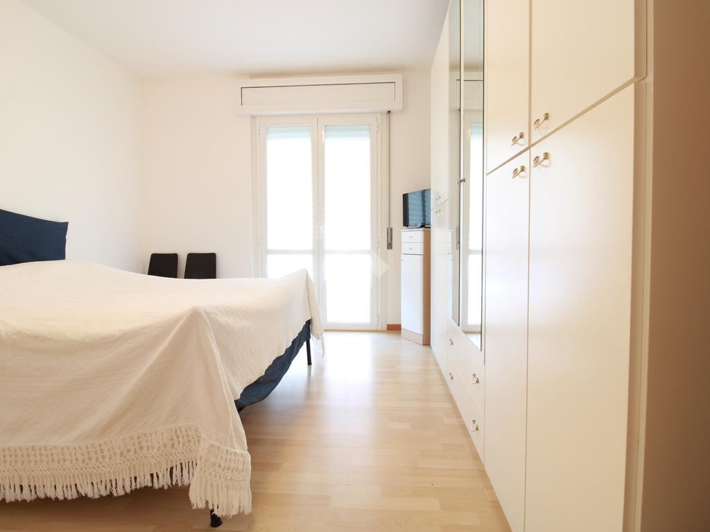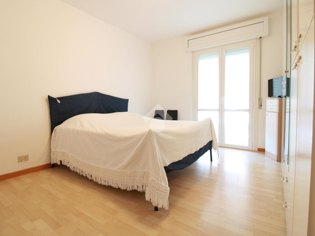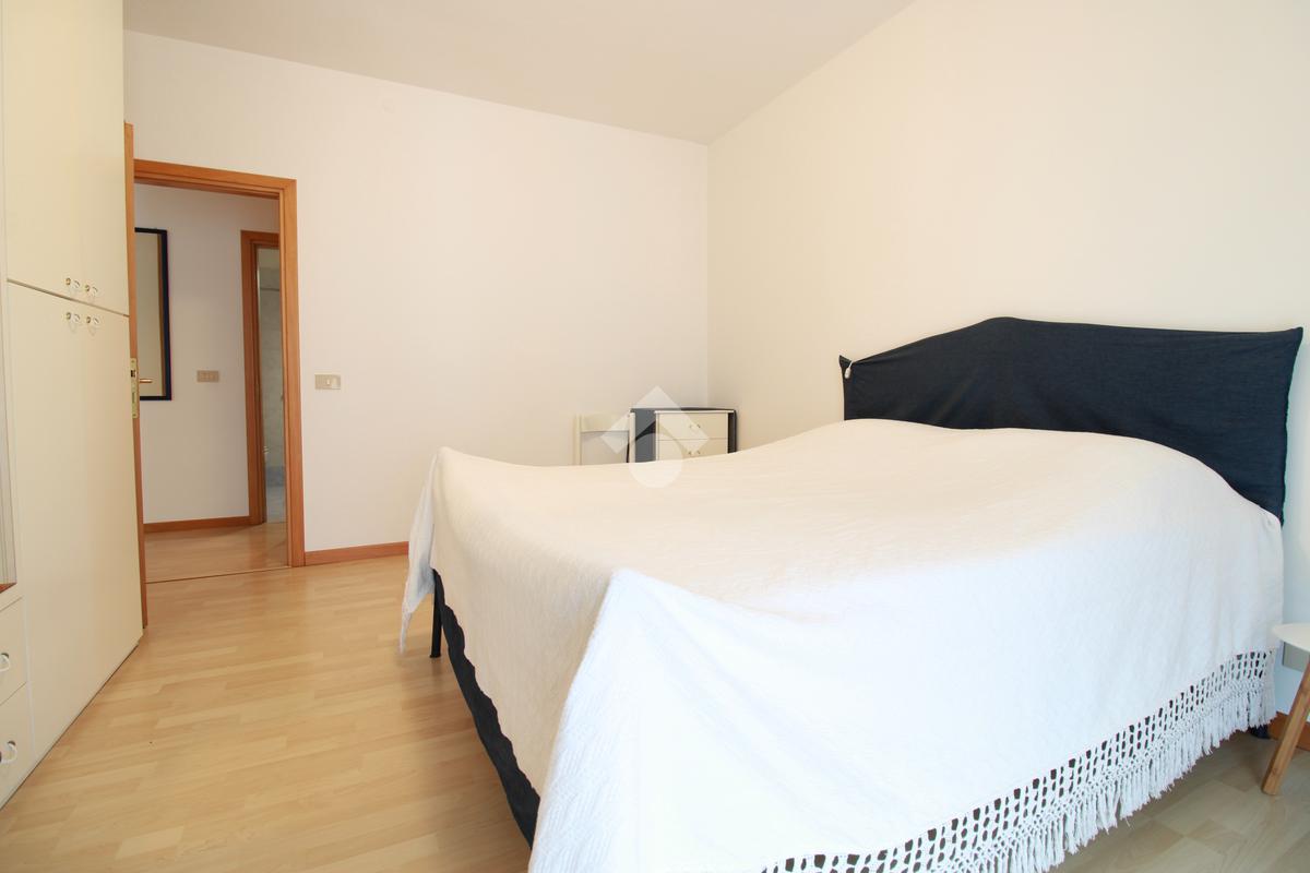 Attraverso un disimpegno si accede alla zona notte, composta da una camera matrimoniale luminosa, con portafinestra sulla terrazza, e da un ripostiglio finestrato, attualmente utilizzato come cameretta, in grado di accogliere anche un letto a castello, per un totale di 4 posti letto.