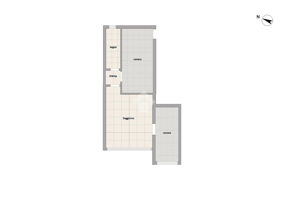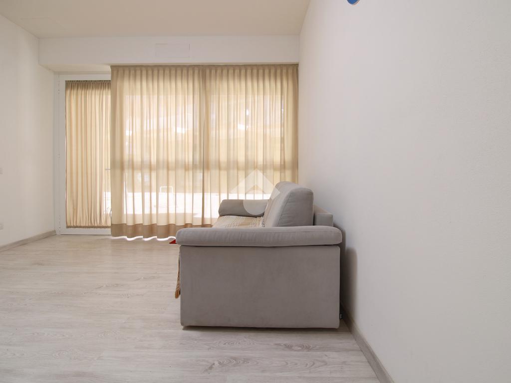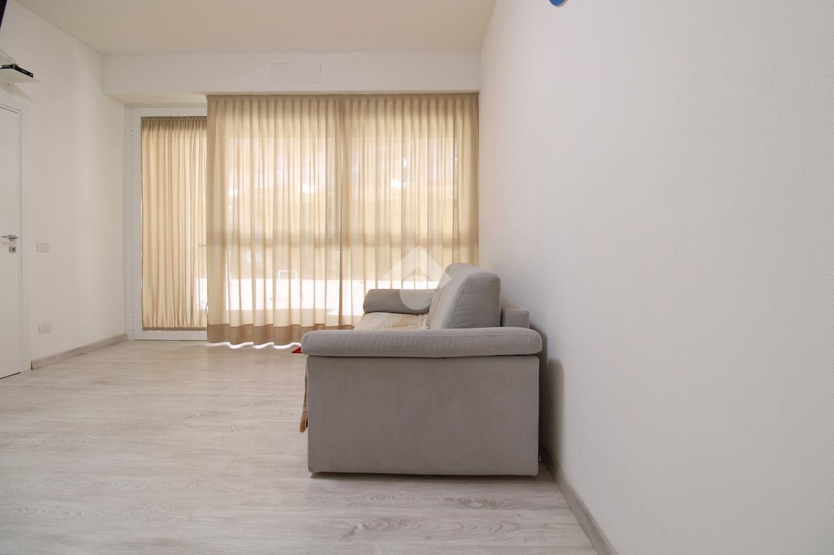 L'immobile si apre sul soggiorno con angolo cottura. Conduce verso la zona notte, un pratico disimpegno, nella quale troviamo un bagno finestrato e una camera matrimoniale; una seconda camera si trova sul lato destro della zona giorno. La proprietà è completata dal posto auto condominiale e la presenza della pompa di calore caldo/freddo.